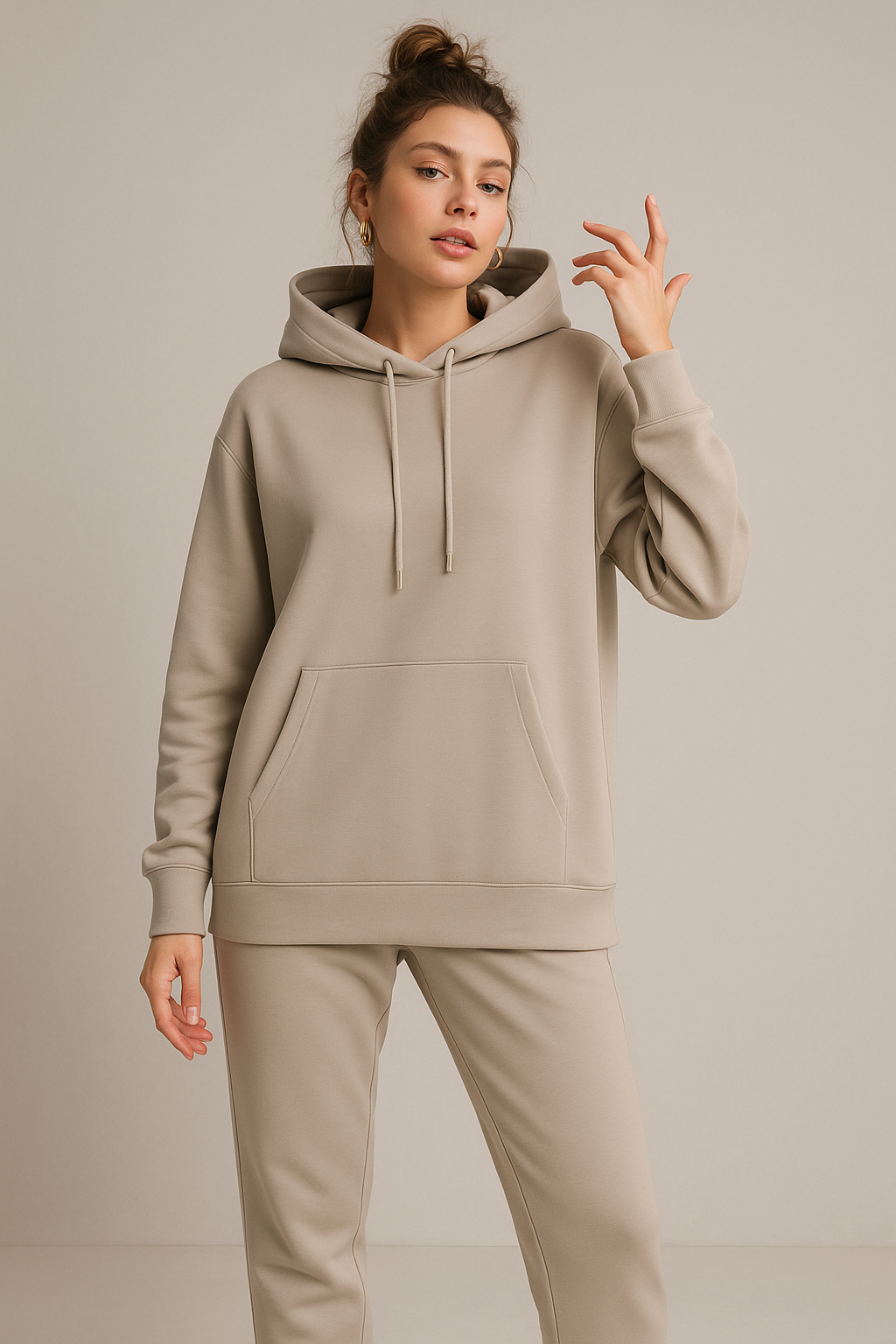 🔹 Teknik Detaylar Ürün Adı: Kadın Bej Oversize Kapüşonlu Eşofman Takımı