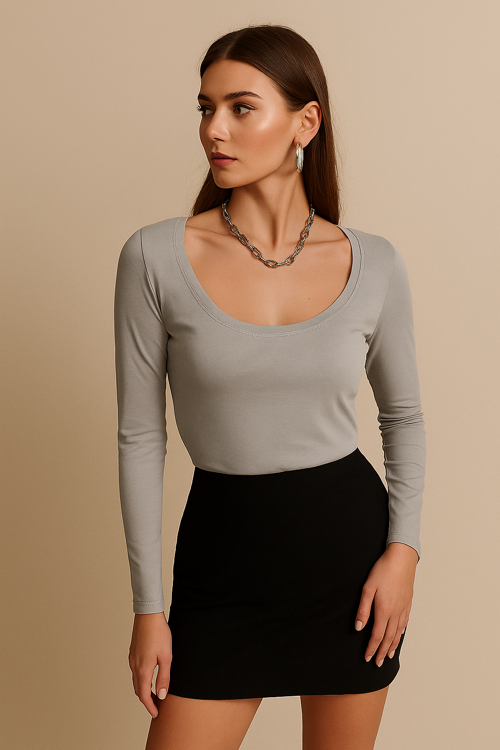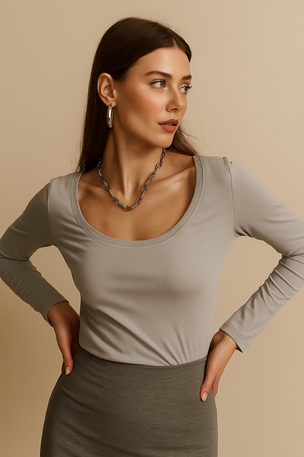 Ürün Adı: Kadın Gri U Yaka Uzun Kollu Bluz