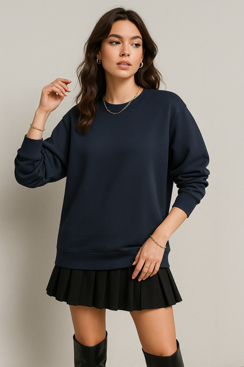 🔹 Teknik Detaylar Ürün Adı: Kadın Lacivert Bisiklet Yaka Oversize Sweatshirt