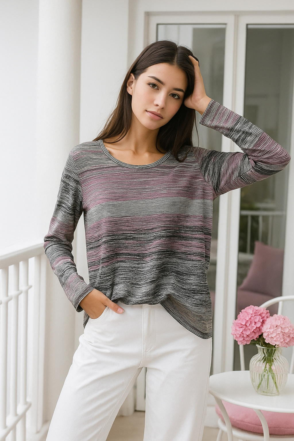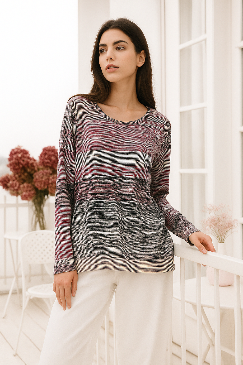 🔹 Ürün Açıklaması Kadın Lila Desenli Bisiklet Yaka Uzun Kollu Bluz, modern desenleri ve konforlu kumaşıyla stilinize zarif bir hava katar. Rahat kalıbı sayesinde günlük hayatta şıklığınızı tamamlarken, iş kombinleriniz ve özel davetlerinizde de kolayca tercih edebileceğiniz çok yönlü bir parçadır.