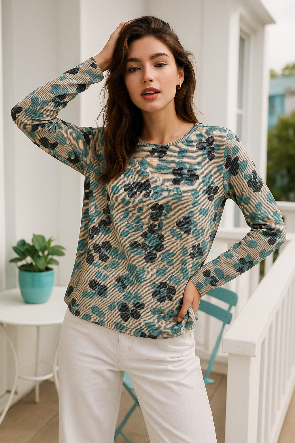 🔹 Ürün Açıklaması Kadın Mint Yeşili Desenli Bisiklet Yaka Uzun Kollu Bluz, modern desenleri ve konforlu kumaşıyla stilinize zarif bir hava katar. Rahat kalıbı sayesinde günlük hayatta şıklığınızı tamamlarken, iş kombinleriniz ve özel davetlerinizde de kolayca tercih edebileceğiniz çok yönlü bir parçadır.