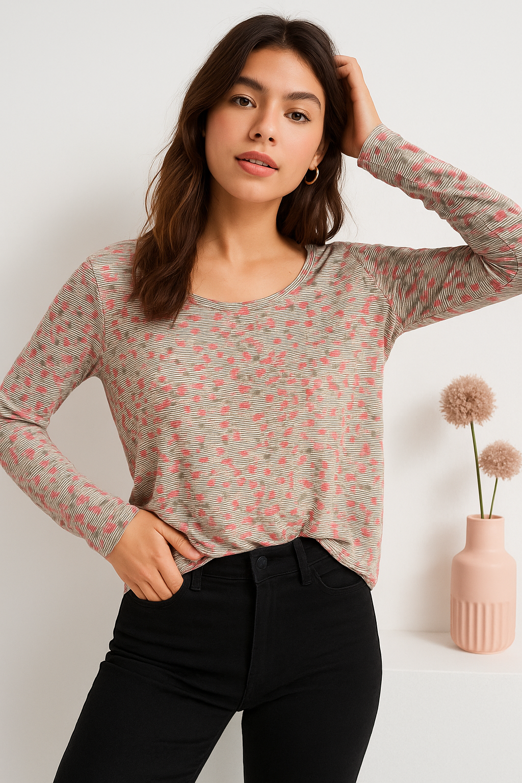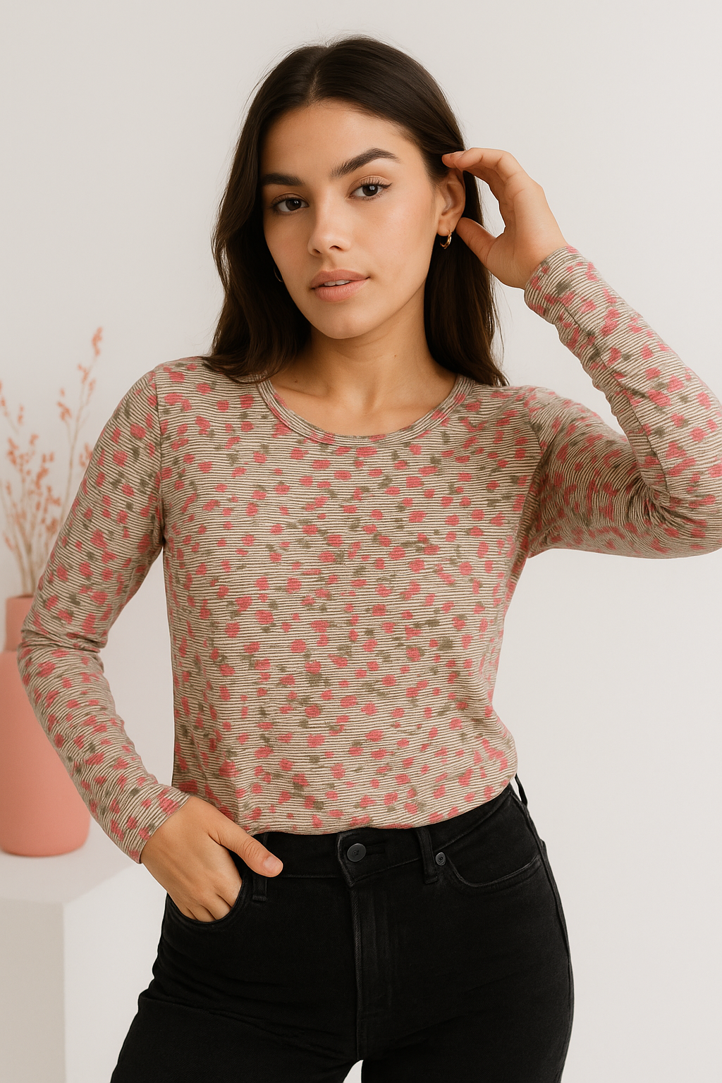 🔹 Ürün Açıklaması Kadın Pembe Desenli Bisiklet Yaka Uzun Kollu Bluz, modern desenleri ve konforlu kumaşıyla stilinize zarif bir hava katar. Rahat kalıbı sayesinde günlük hayatta şıklığınızı tamamlarken, iş kombinleriniz ve özel davetlerinizde de kolayca tercih edebileceğiniz çok yönlü bir parçadır.