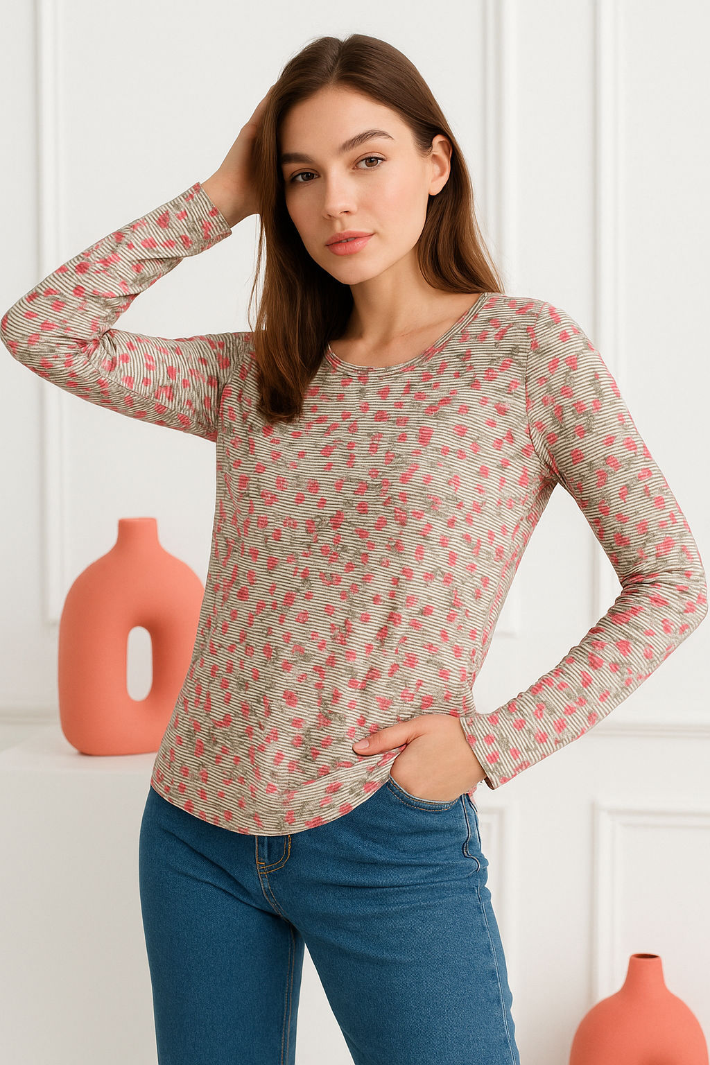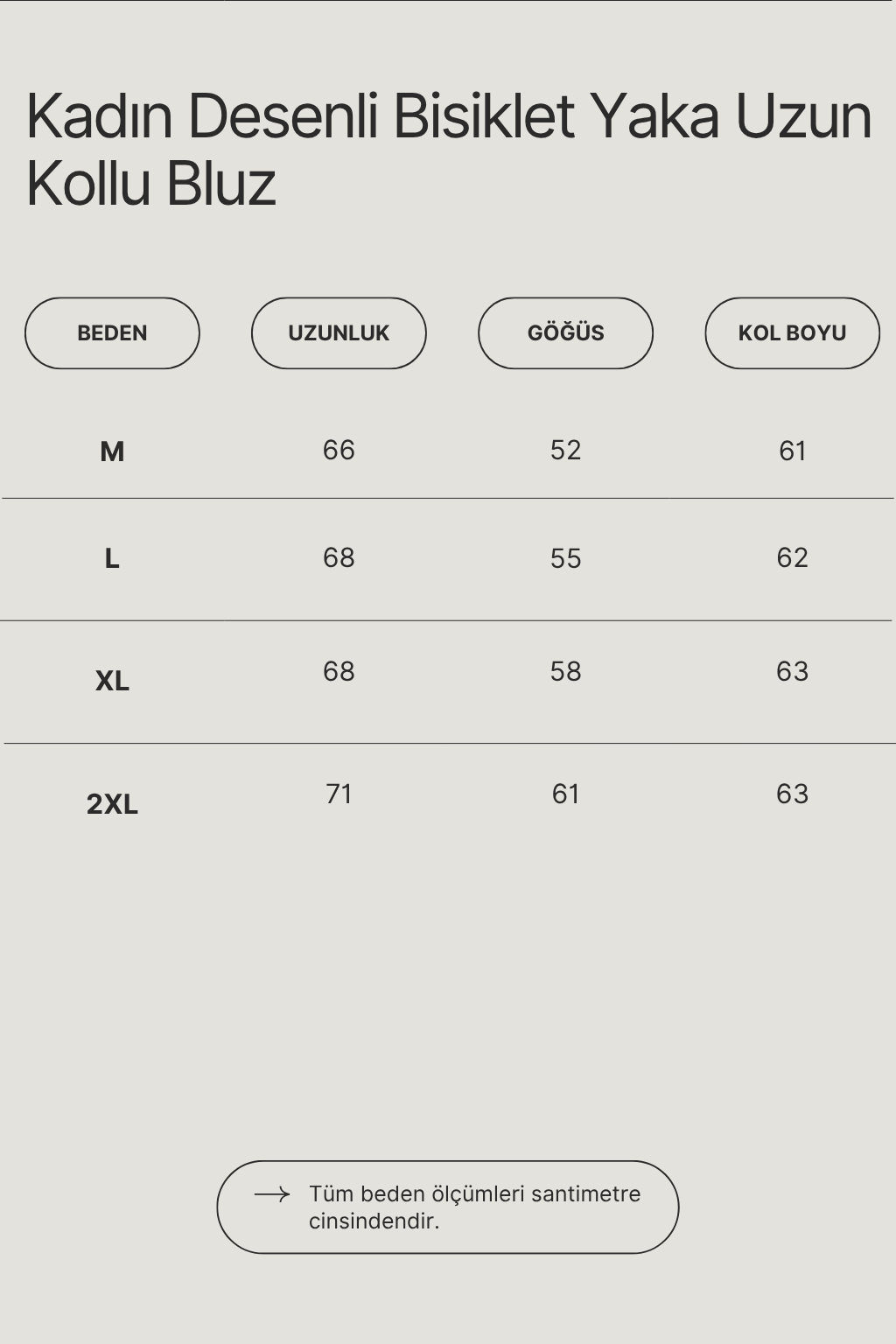 Ürün Adı: Kadın Pembe Desenli Bisiklet Yaka Uzun Kollu Bluz