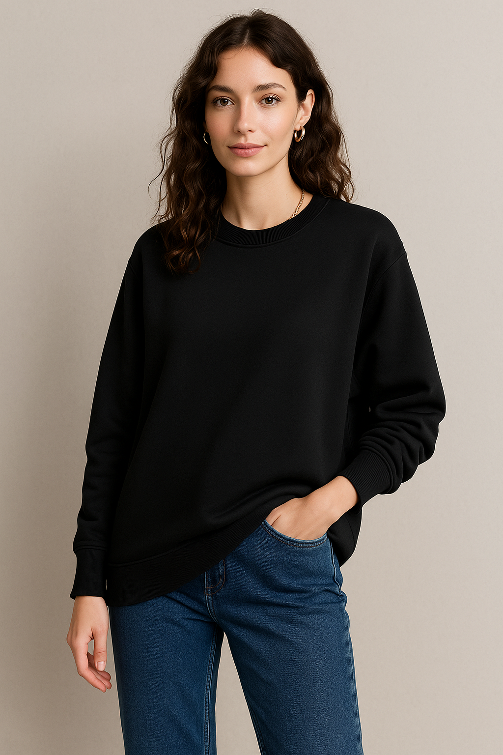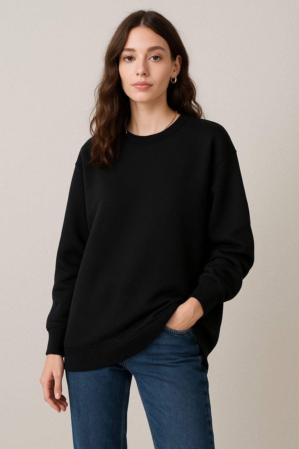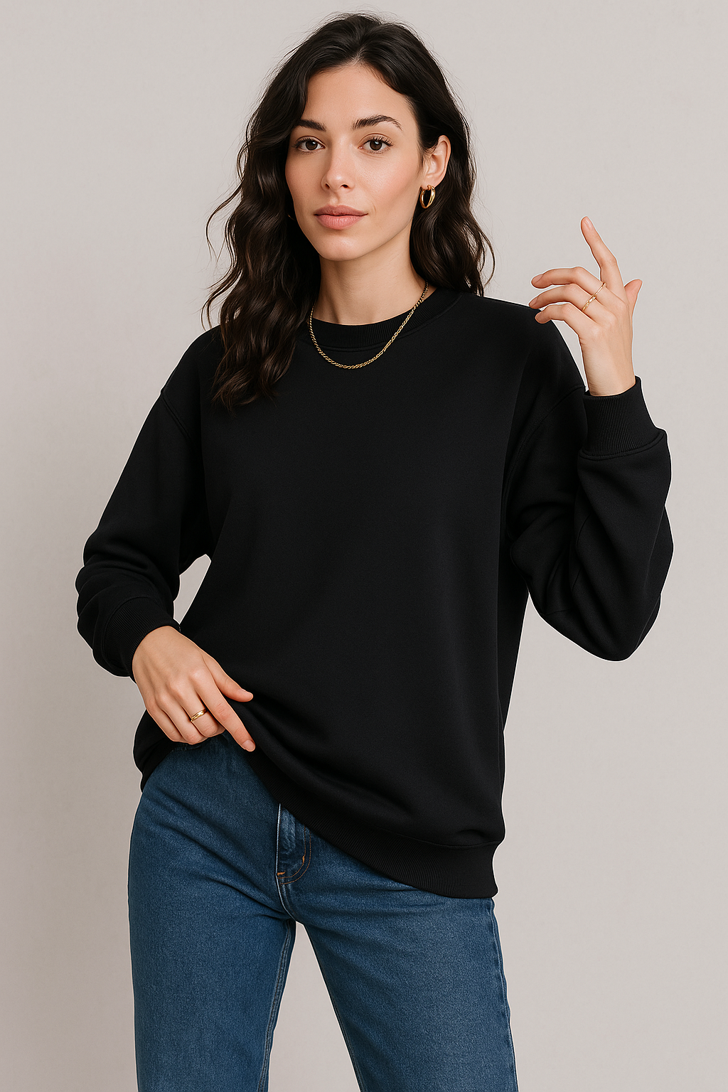 🔹 Teknik Detaylar Ürün Adı: Kadın Siyah Bisiklet Yaka Oversize Sweatshirt