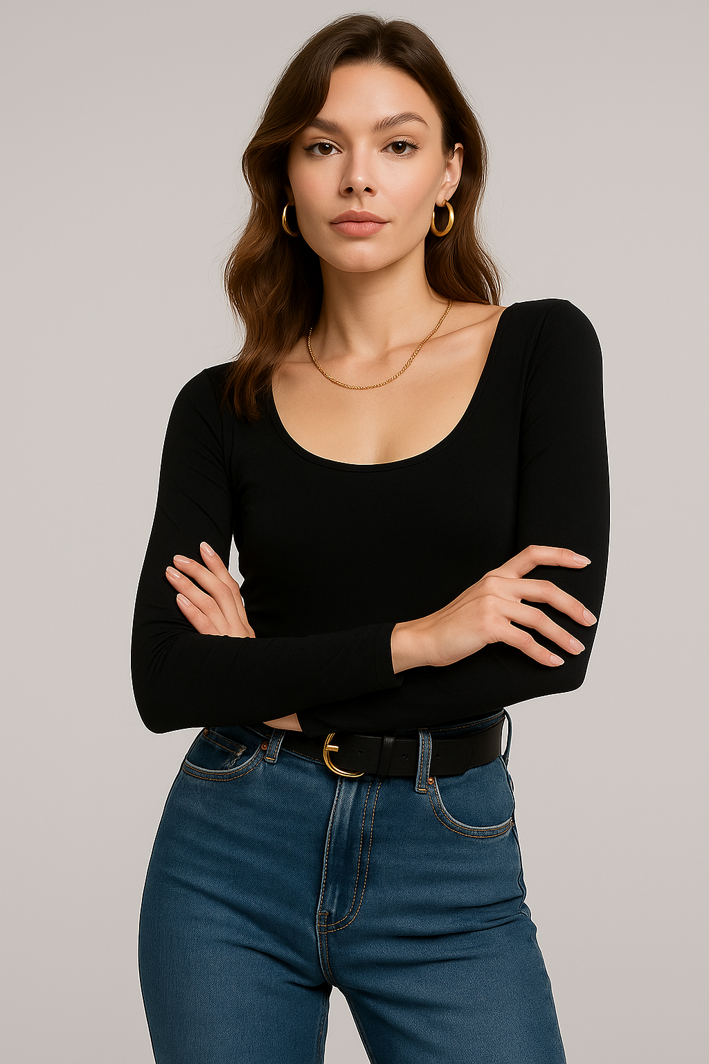 Kadın Siyah U Yaka Uzun Kollu Bluz, zarif tasarımı ve esnek yapısıyla günlük stilinize modern bir dokunuş katar. Vücudu saran fit kesimi sayesinde hem şık hem de rahat bir görünüm sunar. Siyah rengiyle klasik ve güçlü bir şıklık sunarak iş hayatında, günlük kombinlerde ve özel davetlerde kolayca tercih edilebilir.