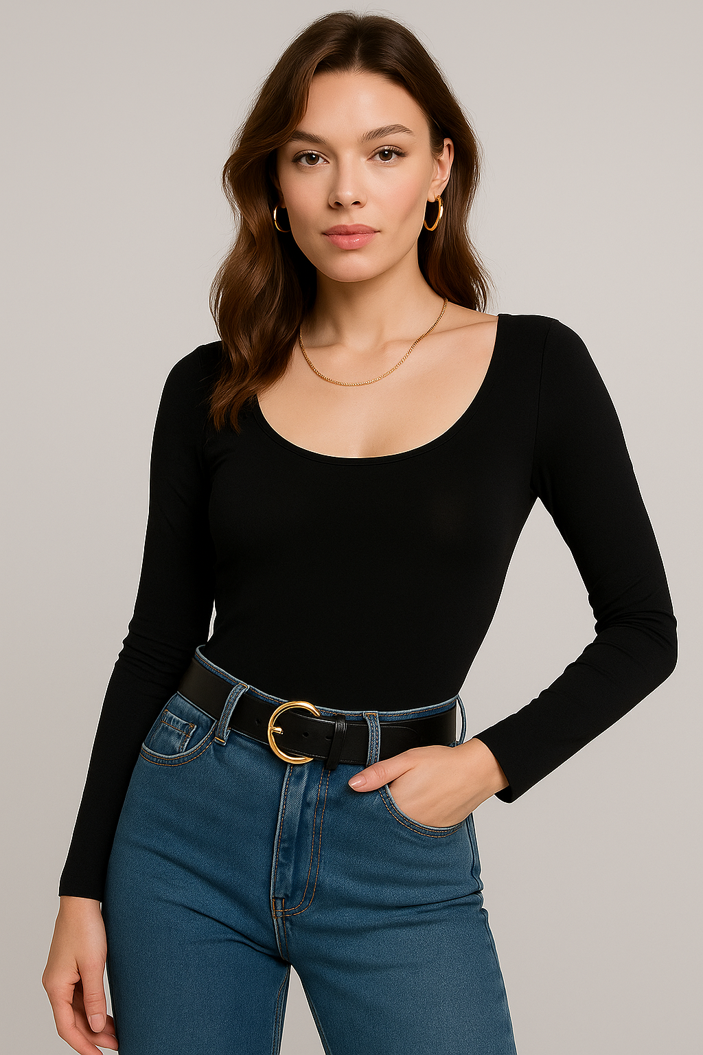 Ürün Adı: Kadın Siyah U Yaka Uzun Kollu Bluz