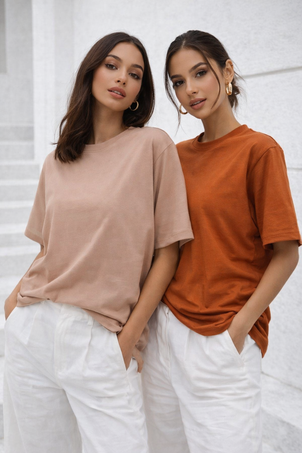 Kadın Vizon-Kiremit 2'li Paket Premium Modal Kumaş Oversize Tişört